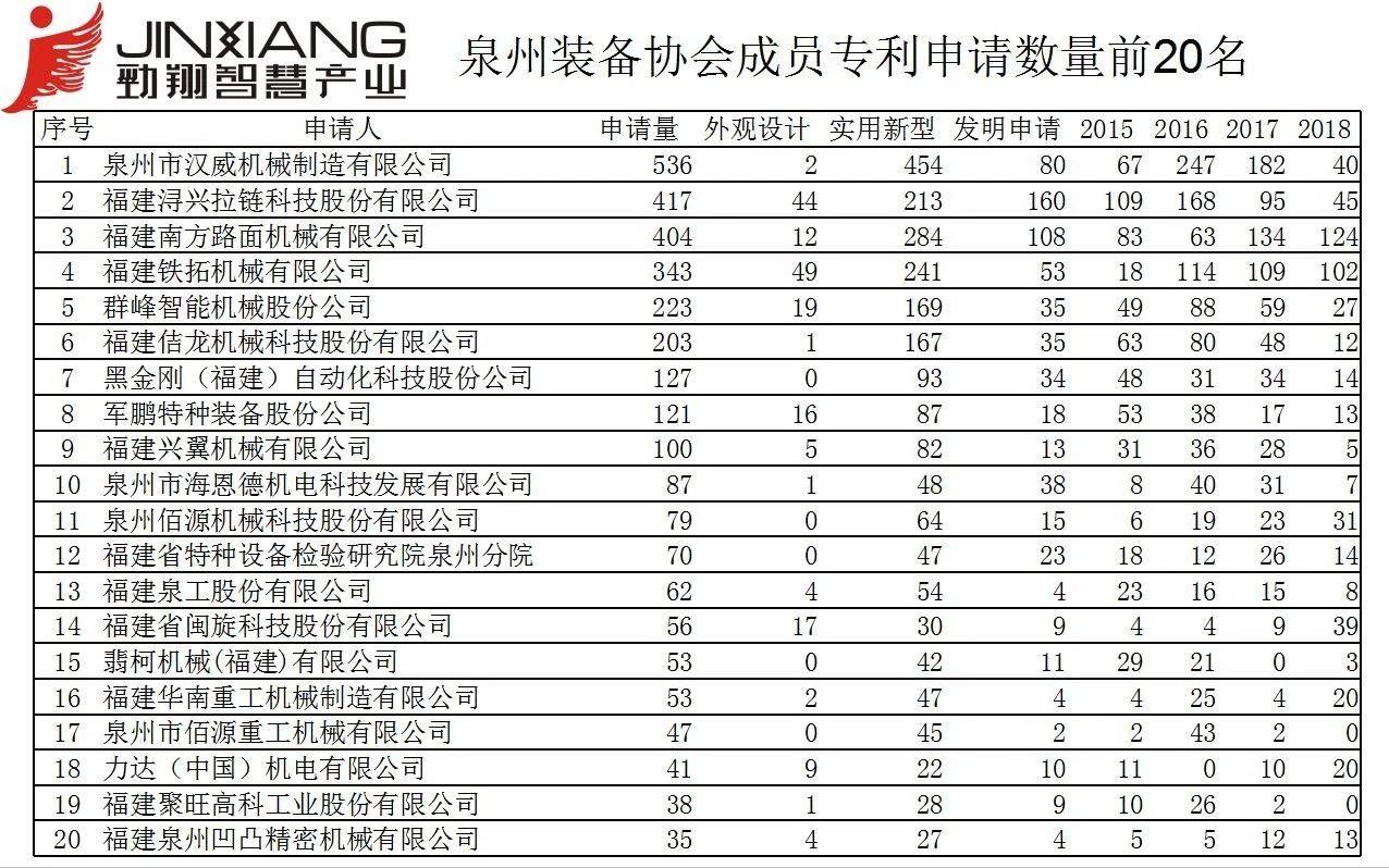 科技創(chuàng)新布局有序高效,泉州裝備協(xié)會(huì)主要成員發(fā)明申請(qǐng)量從2015年的164件提高到2017年的202件,增加了23%,且